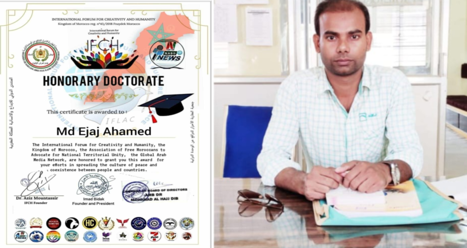 নিজস্ব সংবাদাতা: বিভিন্ন দেশ থেকে বেস্ট পোয়েটস্ অ্যান্ড ট্রান্সলেটরস্ হিসেবে ১৪ জন নির্বাচিত হয়েছেন, তাঁদের মধ্যে তিনি একজন এবং ভারত থেকেও একজন মুর্শিদাবাদ জেলার অরঙ্গাবাদের কবি, লেখক ও সম্পাদক মোঃ ইজাজ আহামেদকে মরক্কোর ইন্টারন্যাশনাল ফোরাম ফর ক্রিয়েটিভিটি এন্ড হিউম্যানিটি (আই এফ সি এইচ) দি কিংডম অব মরক্কো, রেজিষ্ট্রেশন নম্বর ফিডিয়া মরক্কো ৪৩/২০১৮ থেকে সম্মানসূচক ডক্টরেট পেলেন। এর আগেও বেশ কয়েকবার বিভিন্ন দেশের বিভিন্ন প্রতিষ্ঠান থেকে সাম্মানিক ডক্টরেট পেয়েছেন। কয়েকদিন আগেও চীনের ইন্টারন্যাশনাল পোয়েট্রি ট্রান্সলেশন অ্যান্ড রিসার্চ সেন্টার, দ্যা জার্নাল অফ রেন্ডিশন অফ ইন্টারন্যাশনাল পোয়েট্রি (মাল্টিলিঙ্গুয়াল), দ্যা বোর্ড অফ ডাইরেক্টরস অফ ওয়ার্ল্ড ইউনিউন অফ পোয়েট্রি ম্যাগাজিন আয়োজিত ‘প্রাইজস ২০২৪: দ্যা ইন্টারন্যাশনাল বেস্ট পোয়েটস্ অ্যান্ড ট্রান্সলেটরস্’ -এ বিভিন্ন দেশ থেকে বেস্ট পোয়েটস্ অ্যান্ড ট্রান্সলেটরস্ হিসেবে ১৪ জন নির্বাচিত হয়েছেন, তাঁদের মধ্যে তিনি একজন এবং ভারত থেকেও একজন। তাঁর লেখা দেশবিদেশের বিভিন্ন জার্নাল, পত্রপত্রিকা, ম্যাগাজিন ও যৌথ বইয়ে প্রকাশিত হয়ে আসছে। তাঁর কবিতা আরবী, চীনা, কোরীয়, তুর্কী, ইতালীয়, আলবেনীয়, তাজিক, পোলিশ, হিন্দী, রুশ, বসনিয়ান, কিরগিজ, ডাচ, জার্মান ভাষায় অনুবাদ হয়েছে। উল্লেখ্য গত ১২ জানুয়ারী ৬৪ টি দেশের কবি – লেখকদের লেখায় সমৃদ্ধ স্বপ্নের ভেলা সাহিত্য পত্রিকা আনুষ্ঠানিকভাবে প্রকাশ করলেন অরঙ্গাবাদ থেকে। মফস্বল থেকেও যে আন্তর্জাতিক মানের কাজ করা যায় তা দেখিয়ে যাচ্ছেন তিনি।